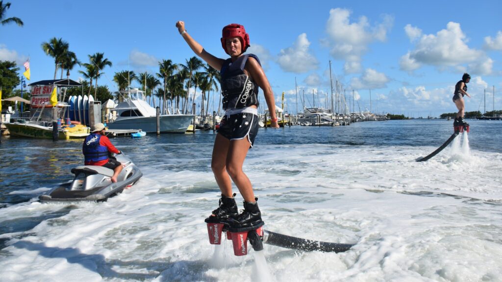 Once ready, it’s time to soar above the turquoise waters of Biscayne Bay, performing spins, dives, and jaw-dropping maneuvers. Throughout your session, your private instructor will provide guidance and support, ensuring a safe and unforgettable Miami water adventure.